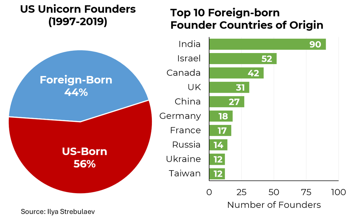 America is great because people come from all over the world to start businesses here. Nearly half of unicorn company founders are immigrants.