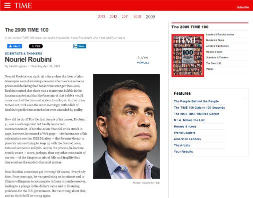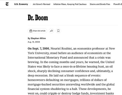 Dr, Roubini's views on global economic issues are widely sought and cited by the media.